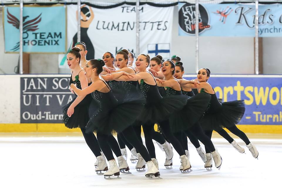 rnFinally but not least, five teams were involved in the Senior A. Team Temptation Senior from Belgium is first (99,10 points). The Dutch team Illumination won the second place. Black Diam's got the bronze medal although the French team was first in the short program.